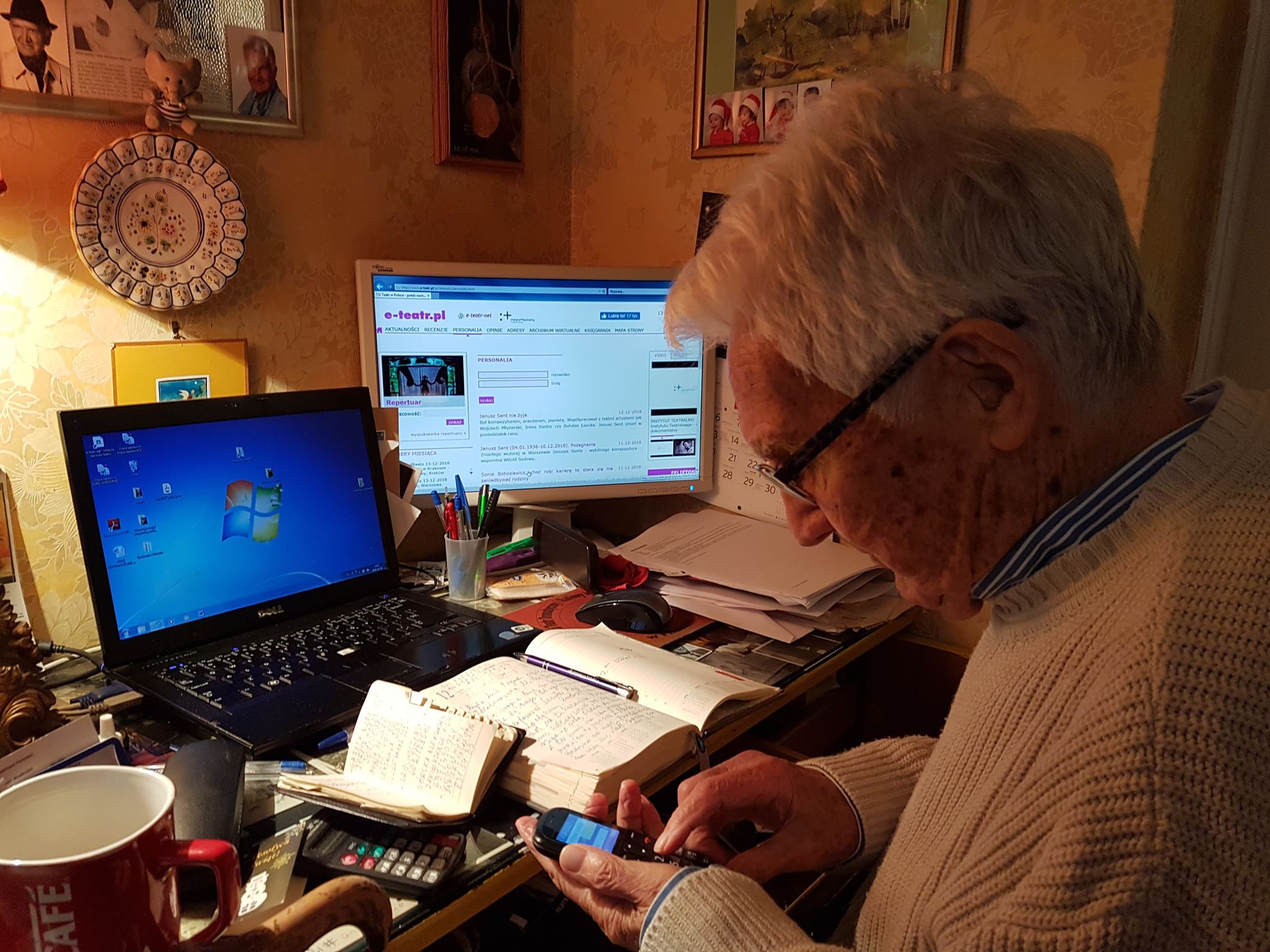 Na komputerze napisał kilka ze swoich książek, a pomimo, że 9 grudnia 2018 roku w Och-Teatrze Krystyny Jandy, odbyła się promocja najnowszej jego książki – i jak kiedyś mi wspomniał ostatniej – to oczywiście już zaczął pisać kolejną…. na szczęście!